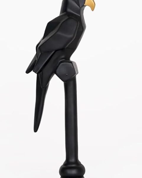 Modern Geometric Parrot Statue – Abstract Origami Style Black & Gold Figurine – Contemporary Resin Bird Sculpture for Home Decor or Office