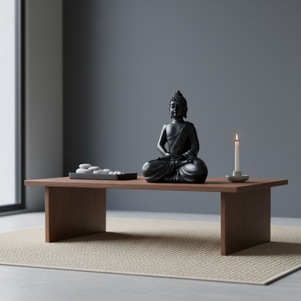 SERENE DHYANA MUDRA: Represents the Buddha in deep meditation (Dhyana Mudra), symbolizing profound peace, wisdom, and the journey to enlightenment.