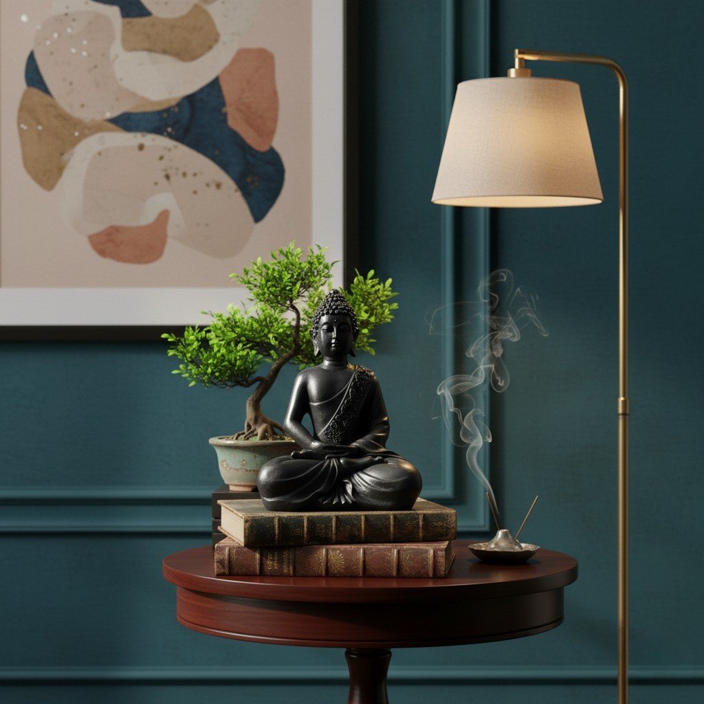 Cultivate Calmness with this Serene Black Meditating Buddha Statue.