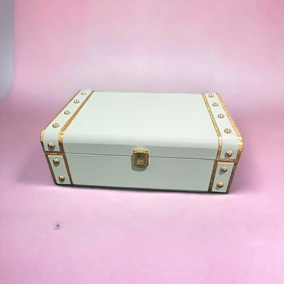 Jewelry Box Organizer for Women ?Luxury Storage Box , Lockable Display Case for Rings, Necklaces, Watches & Accessories Availabel in Black, Red,Pink,Golde ,White (White)