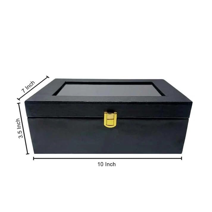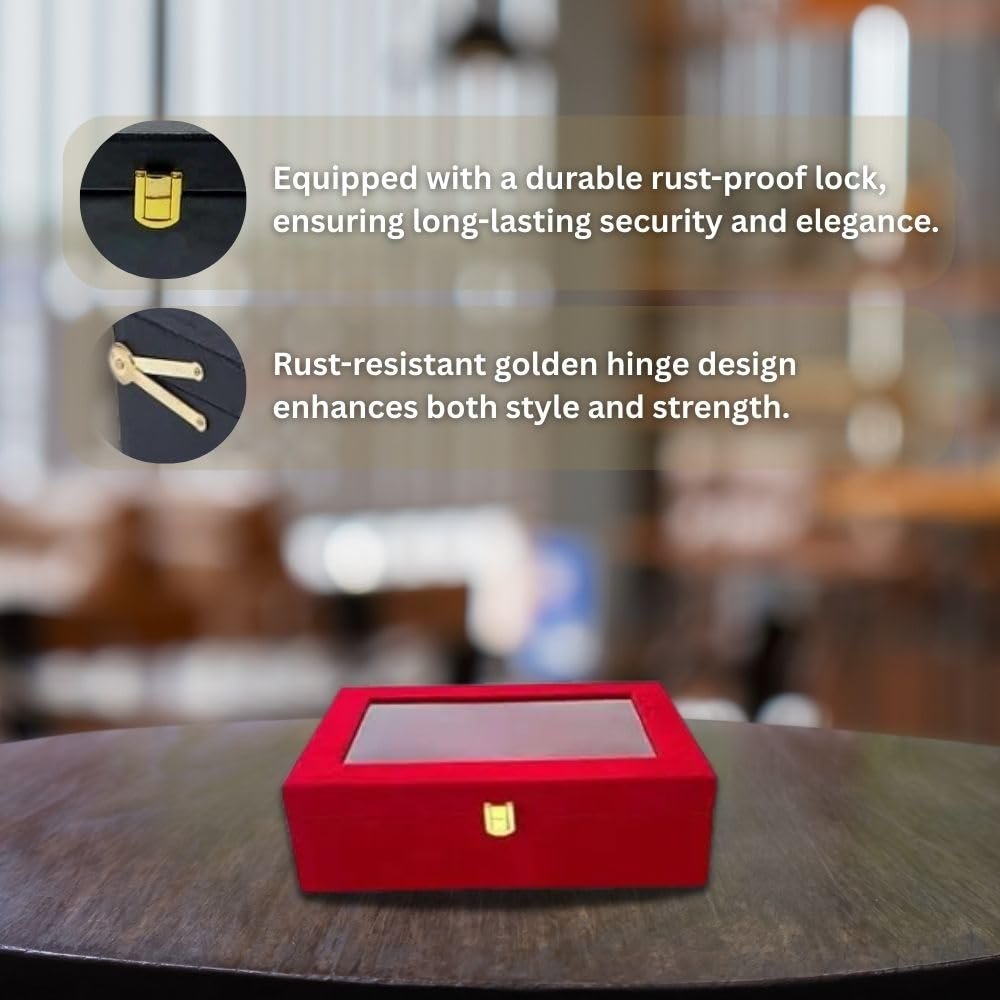This multipurpose storage box with a transparent lid is the perfect blend of elegance and practicality. Featuring a sleek design with a clear window, this box allows you to showcase or access your stored items effortlessly. The secure gold-tone clasp ensures safety while enhancing the aesthetic appeal. Whether you’re organizing jewelry, watches, accessories, or gifting someone special, this storage box is a versatile solution for home, office, or retail use.