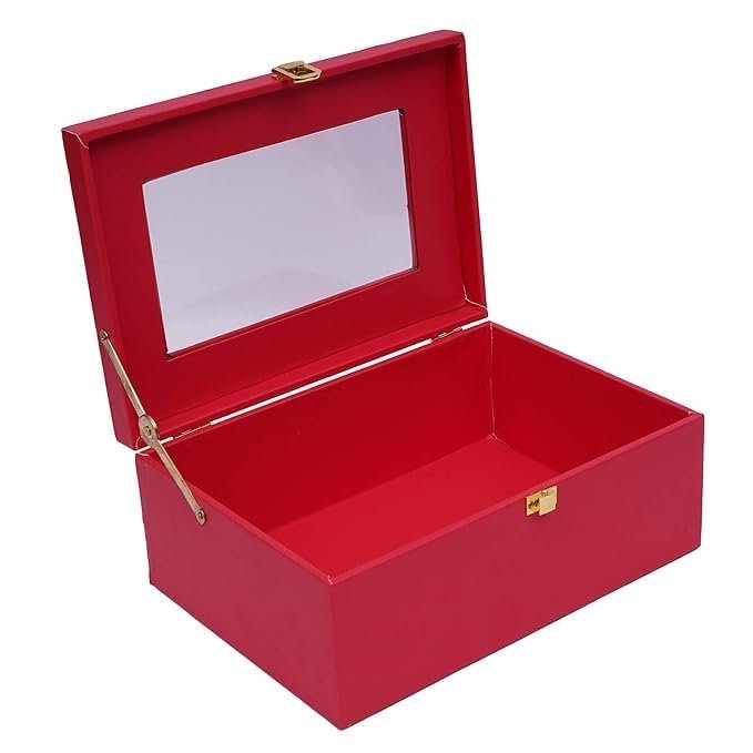 Luxury Storage Box with Glass Lid, Decorative Organiser Box for Jewellery and Accessories, Available in Red, Black, White (Red)