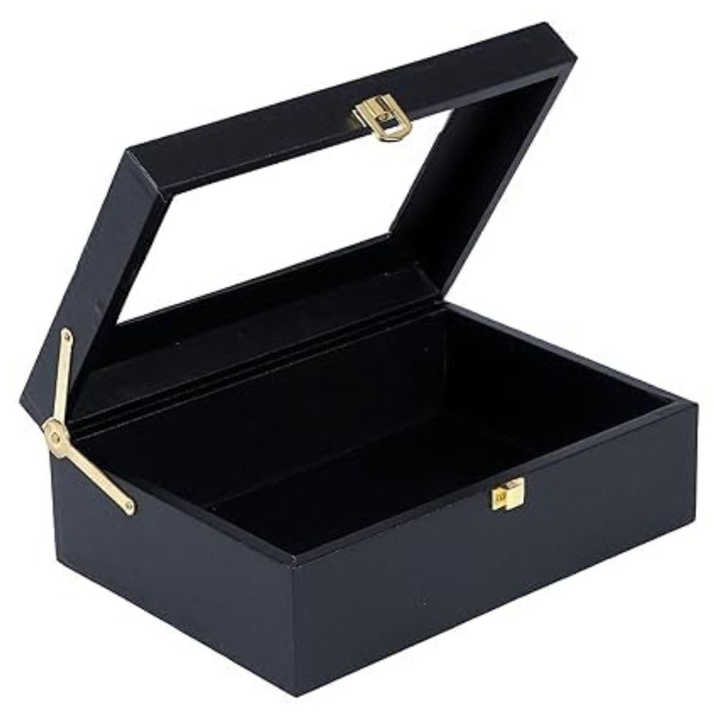 Luxury Storage Box with Glass Lid, Decorative Organiser Box for Jewellery and Accessories, Available in Red, Black, White (Black)