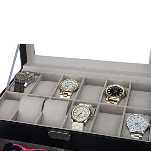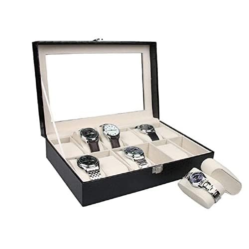Presents Luxury Watch Box for Men & Women ?Lockable Leather Watch Organizer with Glass Lid, Soft Velvet Cushions, Premium Display & Storage Case for Watches -12 Slot Box (Black)