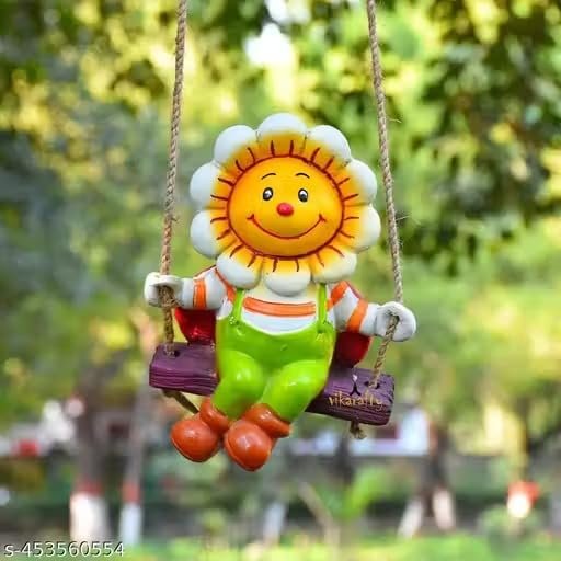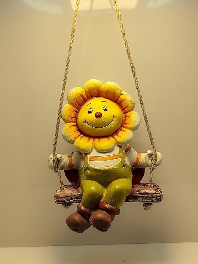 Add a Touch of Sunshine to Your Space with this Swinging Sunflower! Brighten your day every time you step outside with this delightful Whimsical Sunflower on a Swing Figurine. This charming statue features a smiling sunflower character, complete with a striped shirt and green overalls, perched happily on a miniature log swing. Crafted from heavy-duty, weather-resistant resin, this statue is built to last and maintain its vivid colors through all seasons. The lifelike texture of the petals and the realistic appearance of the wooden swing add to its rustic, charming appeal. It’s the perfect size for hanging on your porch, beside your front door, in a sunroom, or from a favorite tree branch in your garden. This Hanging Flower Statue is not just decor; it’s a mood lifter, bringing continuous cheer and positive energy to your home. It makes a wonderful, unforgettable gift for friends and family who appreciate unique, joyful decorations.