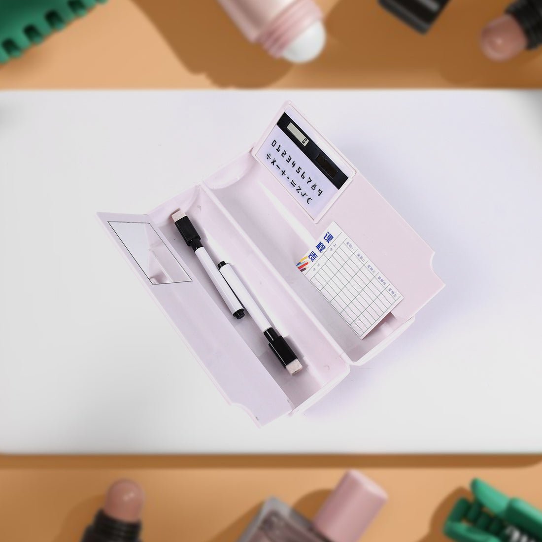 8-in-1 Multi-Function Compass Box Geometry Set | Pencil Case with Calculator, Mirror & Marker Pen | Complete School Stationery Kit